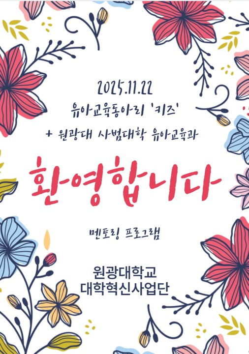 2025년 11월 22일 OO여고 유아교육 동아리 ‘키즈’가 원광대 사범대학 유아교육과에 방문하였습니다. 멘티들은 2,3학년 재학생 멘토에게 유아교육과에 관하여 평소 궁금하던 점을 묻고, 함께 도란도란 학과 체험 활동을 하며 뜻 깊은 시간을 보냈습니다.
